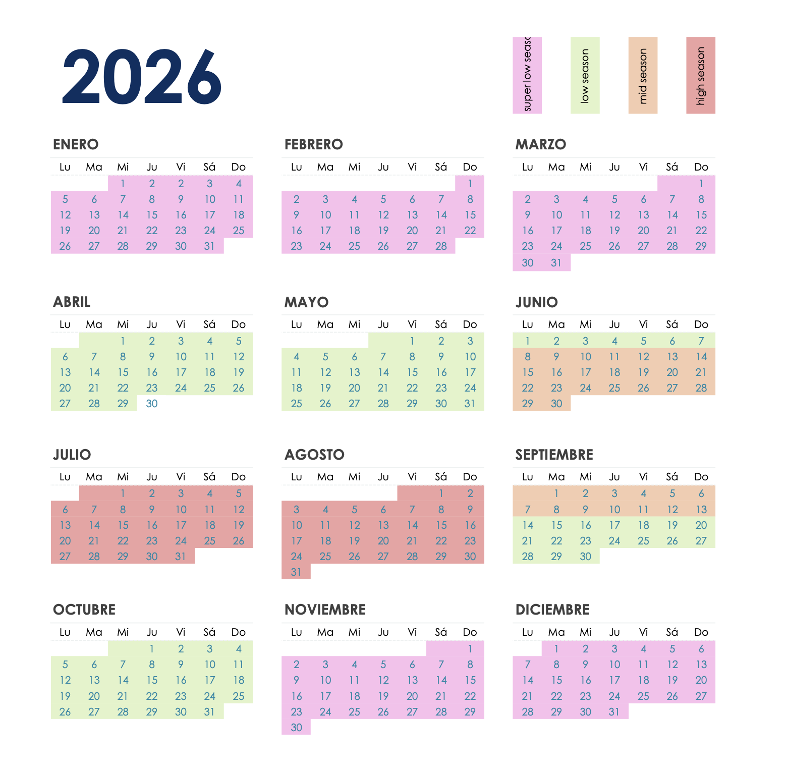 Duración | Fuera temp. | Baja | Media | Alta | Medio día | 300 € | 400 €